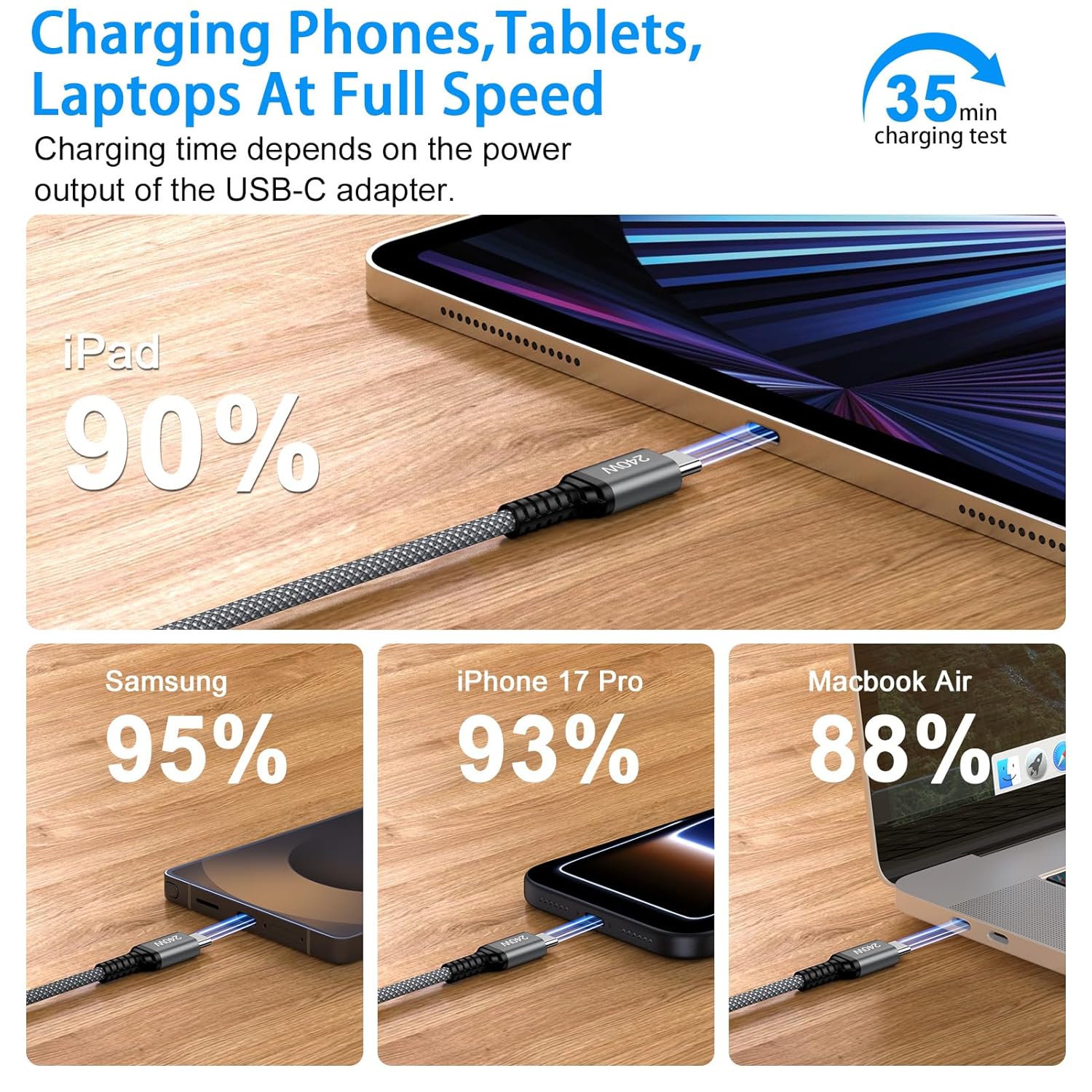 A2: The cable supports a revolutionary 240W fast charging capability, which means we can charge our iPhone 17 from 0% to about 93% in just 35 minutes when paired with a suitable 240W USB-C charger. This impressive charging speed is a significant time-saver,especially on busy days!